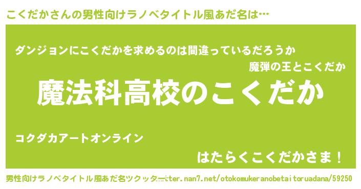 | 胡散臭い通販商品みたいなあだ名 | 『テレビで話題の高麗人参…その名も「こくだか」』 |