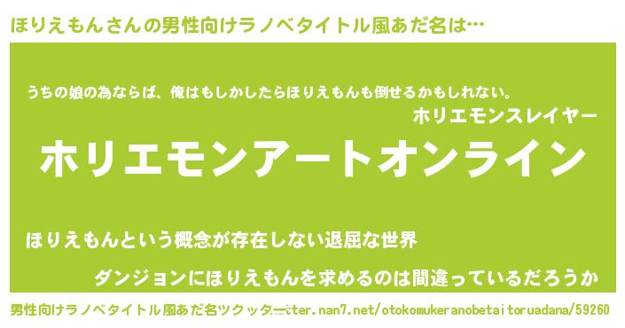 | ファンタジー風あだ名 | 『ホリフェル』『エターナルホリエモンー』 |
