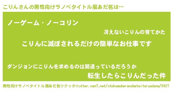 | 女子向けラノベタイトル風あだ名 | 『横柄こりんと宰相陛下』『こりん恋絵巻』 |