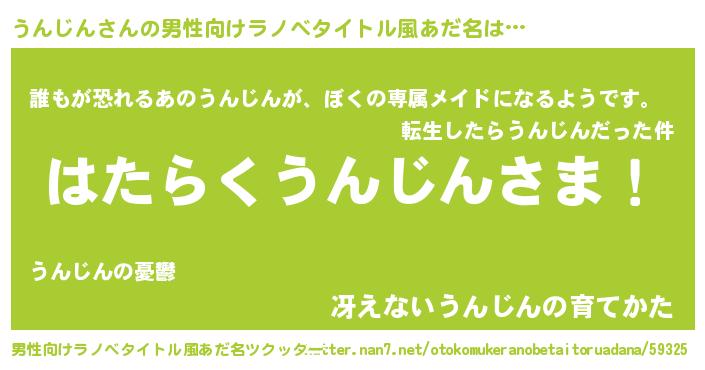 | 胡散臭い通販商品みたいなあだ名 | 『来世でも幸せになれる水素水…その名も「うんじん」』 |