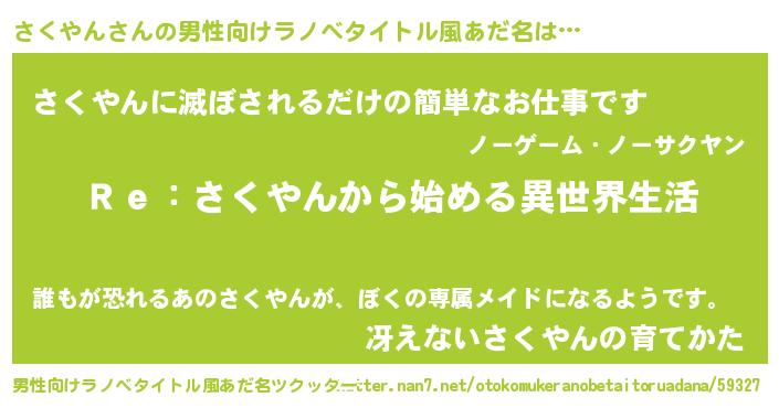 | 女子向けラノベタイトル風あだ名 | 『闇のさくやん』『死神さくやんの再婚』 |