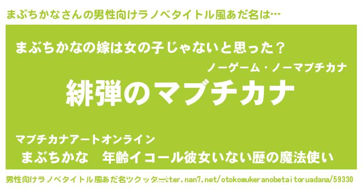 | 胡散臭い通販商品みたいなあだ名 | 『信頼と実績のサプリメント…その名も「まぶちかな」』 |