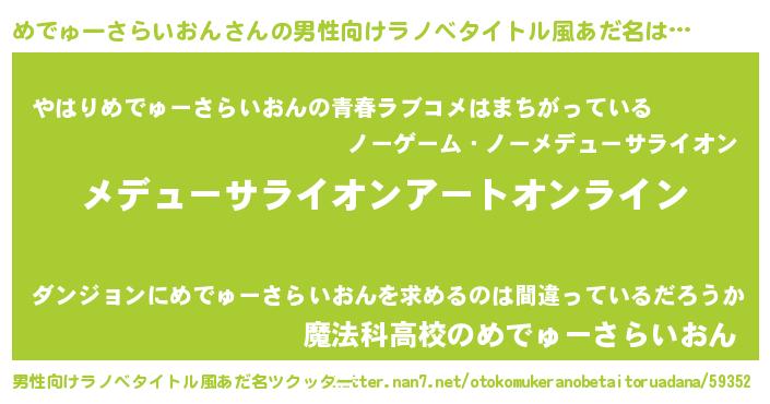 | 胡散臭い通販商品みたいなあだ名 | 『モテモテ間違いなし水晶球…その名も「めでゅーさらいおん」』 |