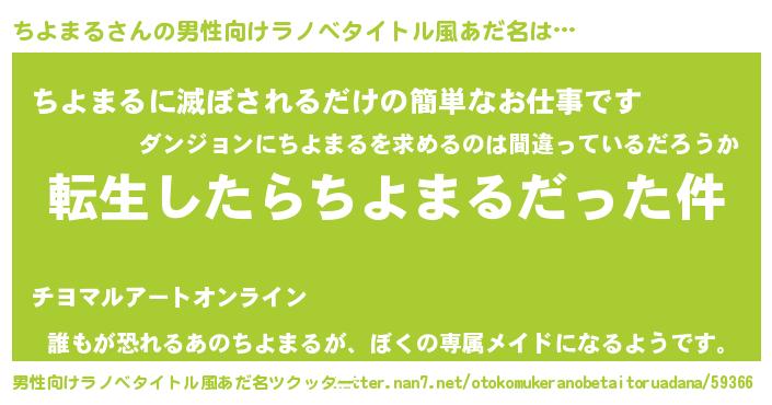 | 女子向けラノベタイトル風あだ名 | 『ちよまるの玉の輿計画!』 |