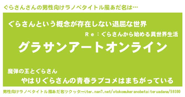 | 胡散臭い通販商品みたいなあだ名 | 『モテモテ間違いなし霊験あらたかなお札…その名も「ぐらさん」』 |