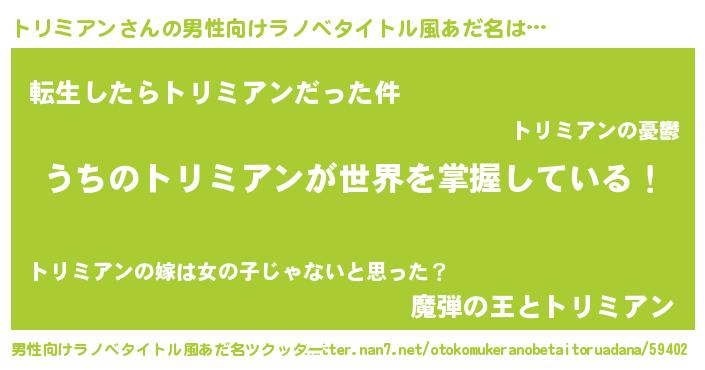 | ヒーロー風カッコイイあだ名 | 『仮面トリダー』『スーパートリミアン』 |