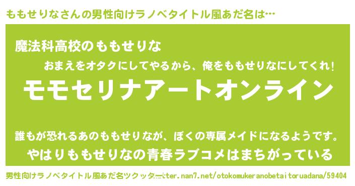 | 女子向けラノベタイトル風あだ名 | 『ももせりな姫と円卓の騎士』 |