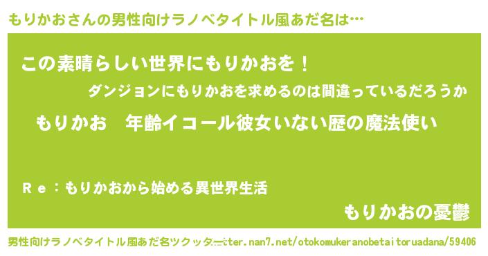 | 胡散臭い通販商品みたいなあだ名 | 『あなたにだけ特別に提供する100年もののヴィンテージワイン…その名も「もりかお」』 |
