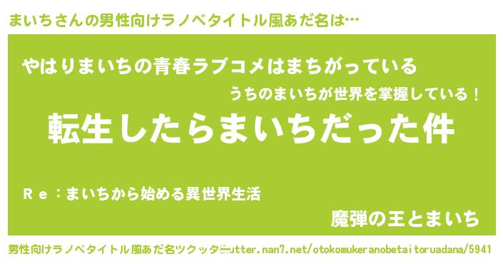 | 女子向けラノベタイトル風あだ名 | 『まいちの玉の輿計画!』『闇のまいち』 |