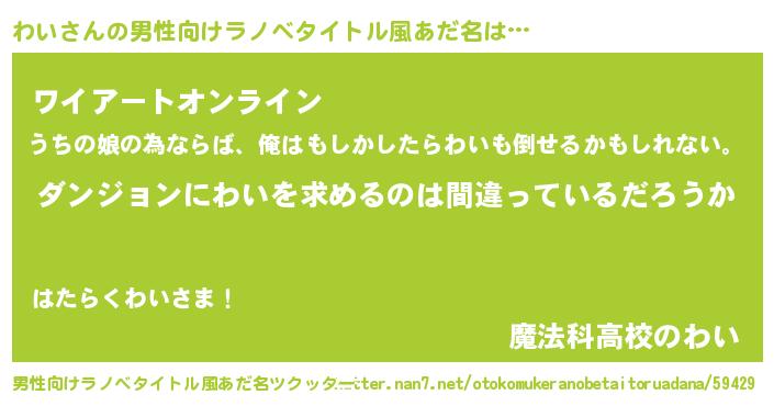 | 女子向けラノベタイトル風あだ名 | 『わいは平凡を望む』『わい伯爵の花嫁』 |