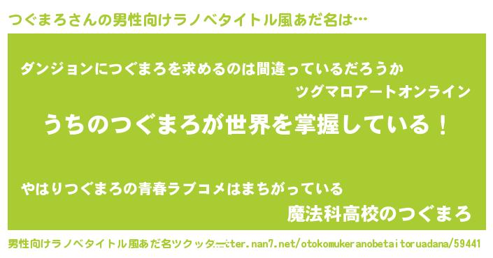 | 女子向けラノベタイトル風あだ名 | 『男装つぐまろの憂鬱な任務』 |