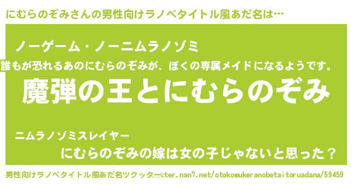 | 意味不明あだ名 | 『住所不定無職にむらのぞみ(2歳)』 |