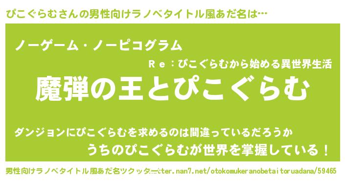 | 女子向けラノベタイトル風あだ名 | 『ぴこぐらむが死なない童話 林檎のぴこぐらむの診療簿』 |