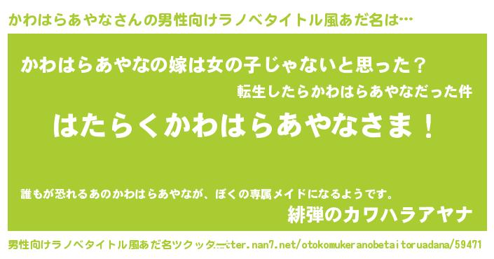 | 意味不明あだ名 | 『とにかく怪しいかわはらあやな』 |