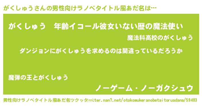 | 女子向けラノベタイトル風あだ名 | 『がくしゅうの卵を拾いまして』 |
