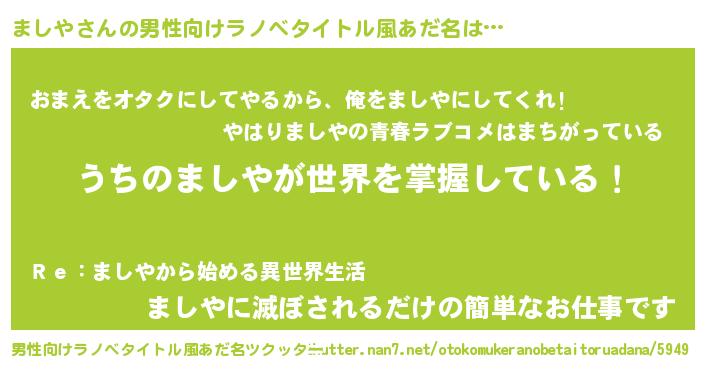 | ヒーロー風カッコイイあだ名 | 『天空の使者ましや』『究極戦士マシヤ』 |