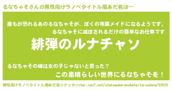 | 胡散臭い通販商品みたいなあだ名 | 『絶対に幸福をもたらす健康食品…その名も「るなちゃそ」』 |