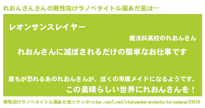 | 胡散臭い通販商品みたいなあだ名 | 『あなたにだけ特別に提供する100年もののヴィンテージワイン…その名も「れおんさん」』 |