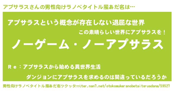 | ヘコむあだ名 | 『アプサラス(笑)』『アプっ子』 |