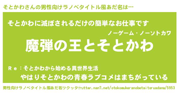 | 意味不明あだ名 | 『住所不定無職そとかわ(1歳)』 |