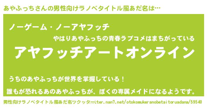 | 胡散臭い通販商品みたいなあだ名 | 『億万長者になれるブレスレット…その名も「あやふっち」』 |