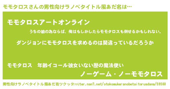 | 女子向けラノベタイトル風あだ名 | 『モモタロスは平凡を望む』 |