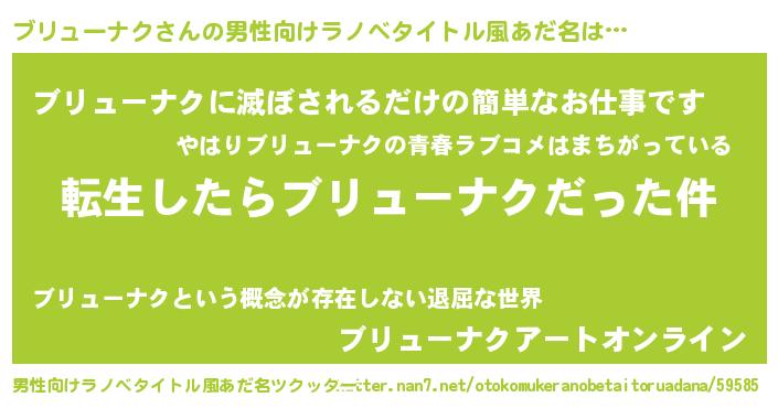 | 女子向けラノベタイトル風あだ名 | 『ブリューナクの玉の輿計画!』 |
