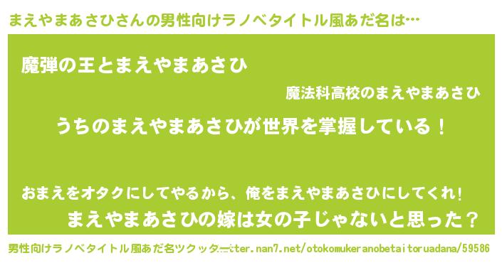 | 意味不明あだ名 | 『住所不定無職まえやまあさひ(50歳)』 |