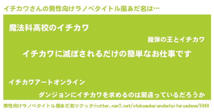 | ヒーロー風カッコイイあだ名 | 『究極戦士イチカワ』『暗黒騎士イチ』 |
