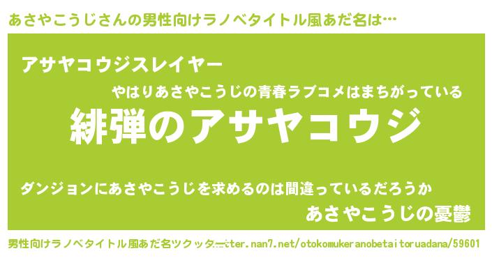 あさやこうじさんの男性向けラノベタイトル風あだ名をツクッター!