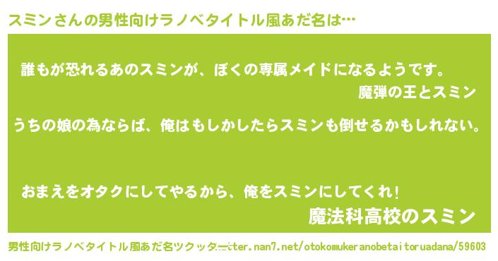 | 女子向けラノベタイトル風あだ名 | 『スミンの婚約者』『スミンアンティーク』 |
