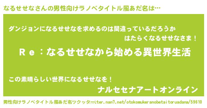 | 女子向けラノベタイトル風あだ名 | 『なるせせなストレイドッグス』 |