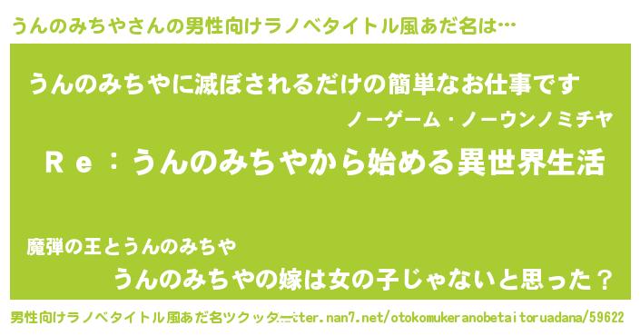 | 意味不明あだ名 | 『自称うんのみちや』 |