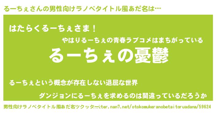 | ヘコむあだ名 | 『るーふぇ~』『るー太郎』『豆乳』 |