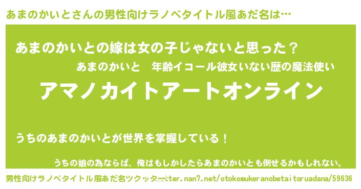 | 女子向けラノベタイトル風あだ名 | 『誰かこのあまのかいとを説明してください! ~契約から始まるウェディング~』 |