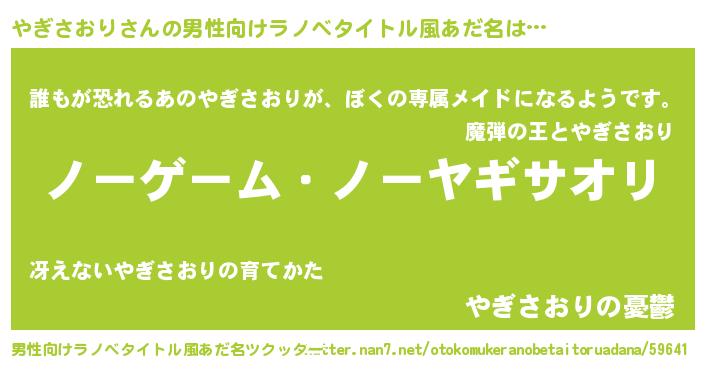 | ヘコむあだ名 | 『やぎさおり(苦笑)』『やぎにー』 |