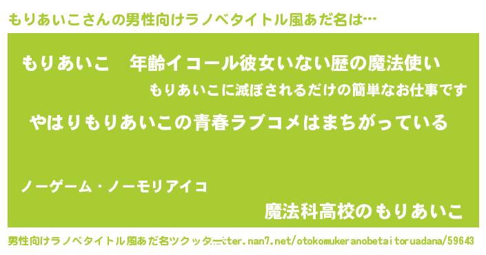 | 意味不明あだ名 | 『もりあいこフォーエバー』 |