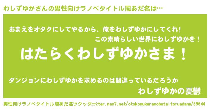 | 胡散臭い通販商品みたいなあだ名 | 『100人中100人が認めたイリジウム磁石…その名も「わしずゆか」』 |