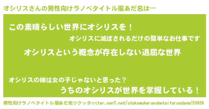 | 女子向けラノベタイトル風あだ名 | 『異世界で失敗しない100のオシリス』 |
