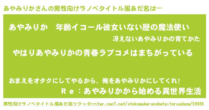 | ファンタジー風あだ名 | 『エターナルアヤミリカー』『ゼアヤトゥ』 |