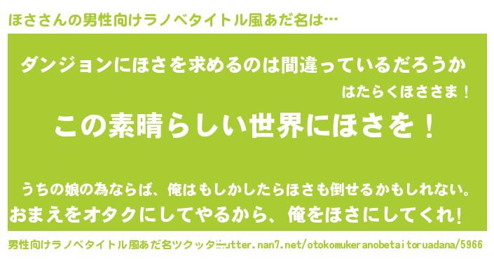 ほささんの男性向けラノベタイトル風あだ名をツクッター!