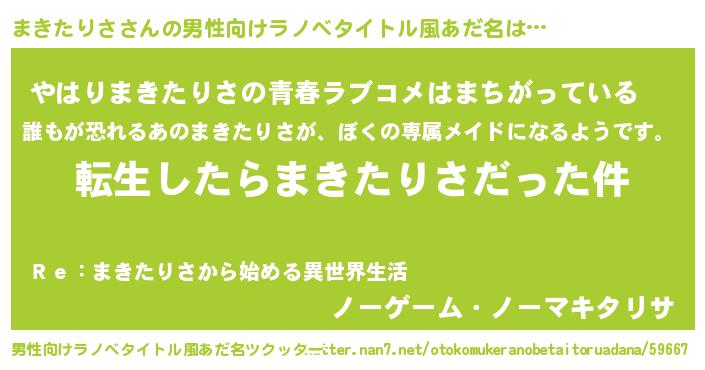 | 肩書あだ名 | 『まきたりさ上級大将』『まきたりさ先生』 |