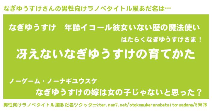 | 胡散臭い通販商品みたいなあだ名 | 『伝統あるサプリメント…その名も「なぎゆうすけ」』 |