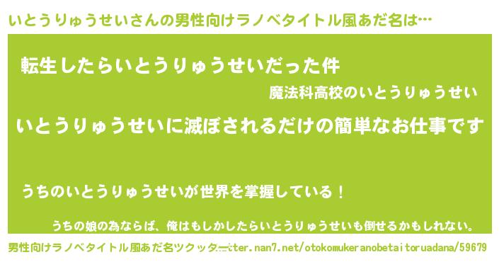 | 胡散臭い通販商品みたいなあだ名 | 『運命の人と巡り会える高級そうな壺…その名も「いとうりゅうせい」』 |