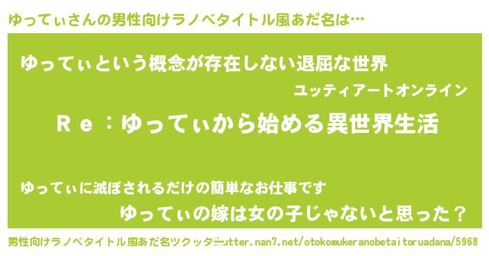 | 市区町村名 | 『横ゆっ市』『ゆっ覇市』『ゆっ阪市』 |