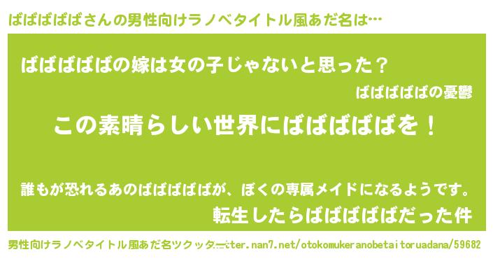 | 女子向けラノベタイトル風あだ名 | 『悪役ばばばばばに転生したようですが、知った事ではありません』 |