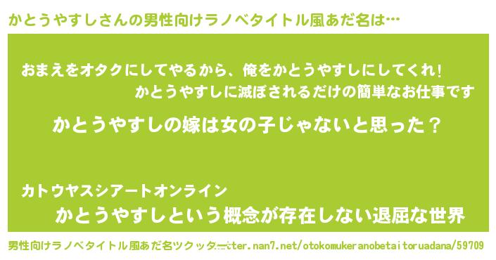| 女子向けラノベタイトル風あだ名 | 『かとうやすし様がみてる』 |