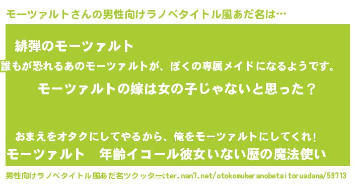 | 女子向けラノベタイトル風あだ名 | 『モーツァルト様がみてる』 |