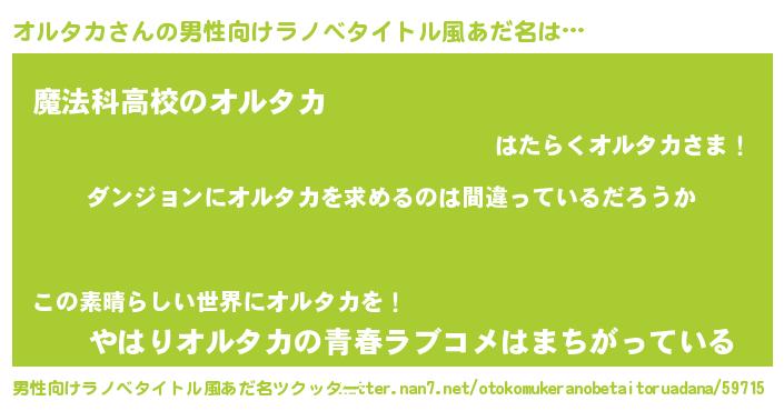 | ヒーロー風カッコイイあだ名 | 『黄金騎士オル』『超時空戦士オルタカ』 |