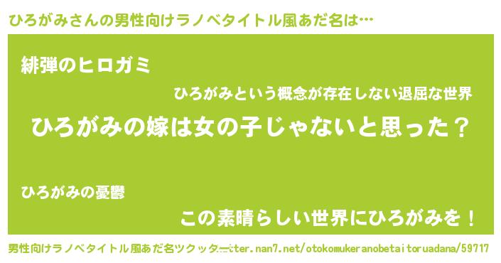 | 胡散臭い通販商品みたいなあだ名 | 『全米が絶賛したサプリメント…その名も「ひろがみ」』 |